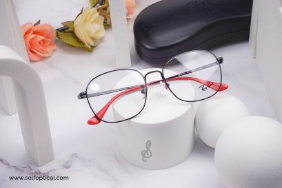 ทรงกลมยอดฮิต มีกิมมิคสีแดงที่ปลอกขาแว่น ดูสวย โดดเด่น กรอบทรงกลมชนิดครึ่งกรอบ เลนส์แบบเซาะร่องเอ็นด้านล่าง วัสดุทำจากโลหะแข็งแรง