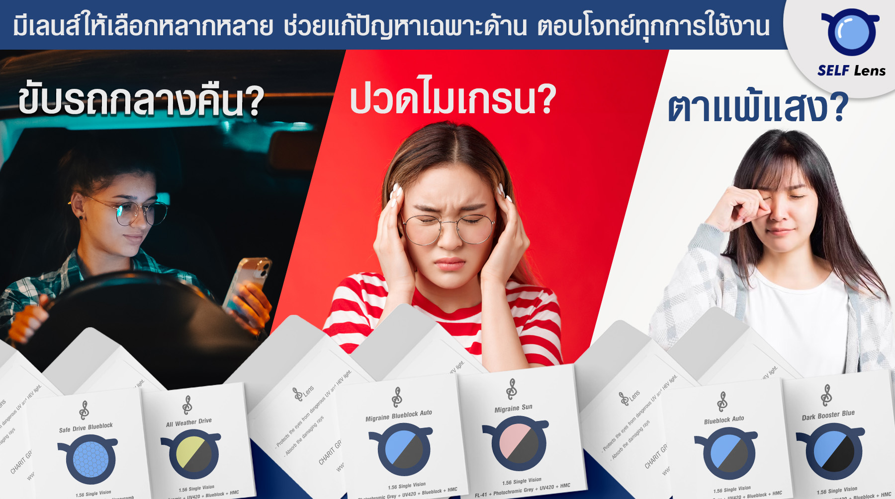 ไม่ว่าจะเป็นปัญหาตาแพ้แสง ปัญหาขณะขับรถกลางคืน ปัญหาปวดหัวไมเกรน และปัญหาต่างๆอีกมากมาย