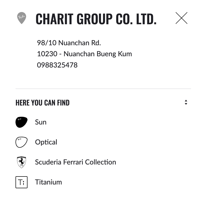 โดยลูกค้าสามารถตรวจสอบด้วยตัวเองผ่านเว็บไซต์ Ray-Ban ที่ลิงก์ด้านล่างนี้: https://www.ray-ban.com/asean/c/store-locator