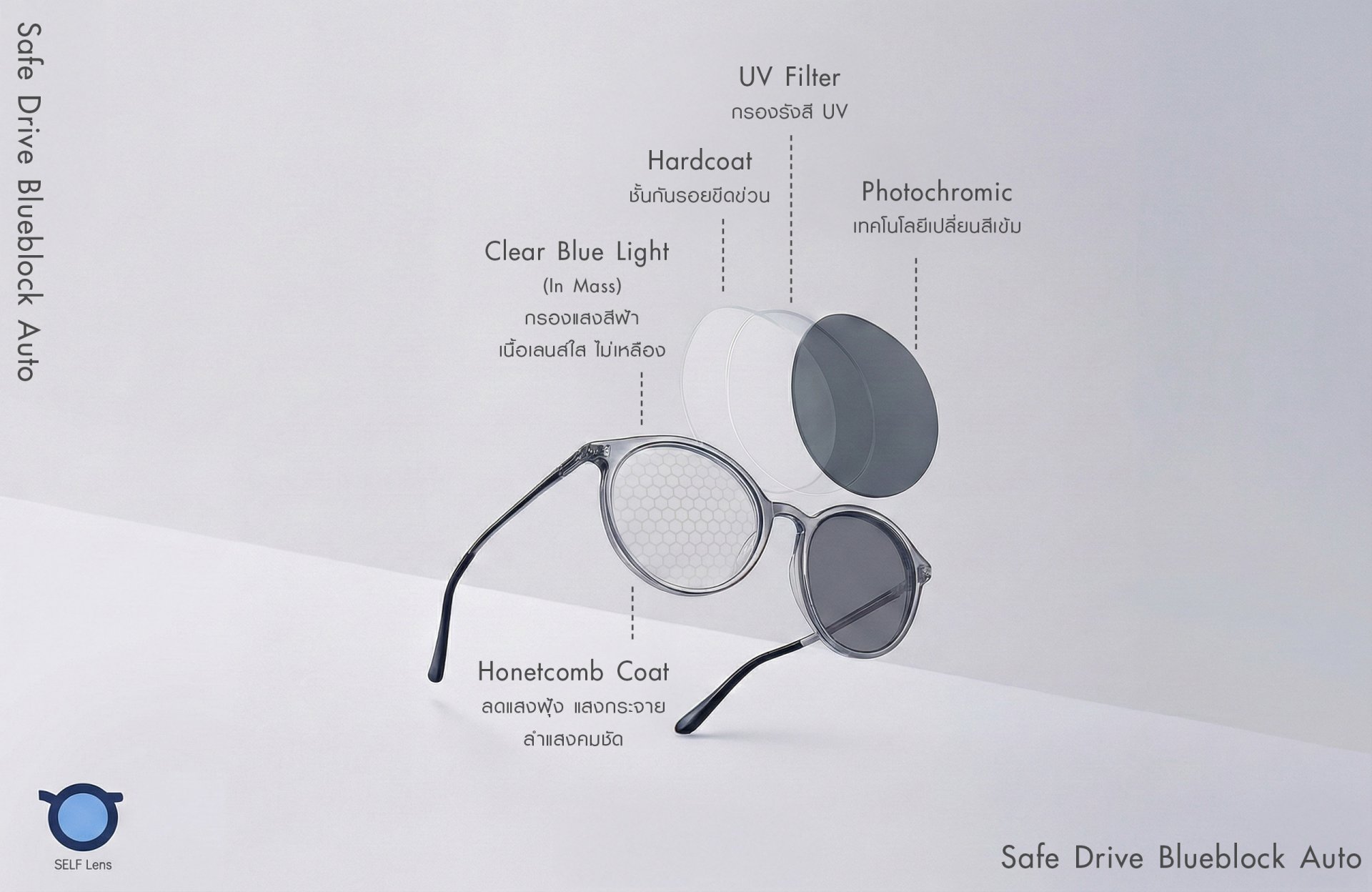 เลนส์สำหรับขับรถ กลางวัน และ กลางคืน Safe Drive Blueblock Auto Lenses