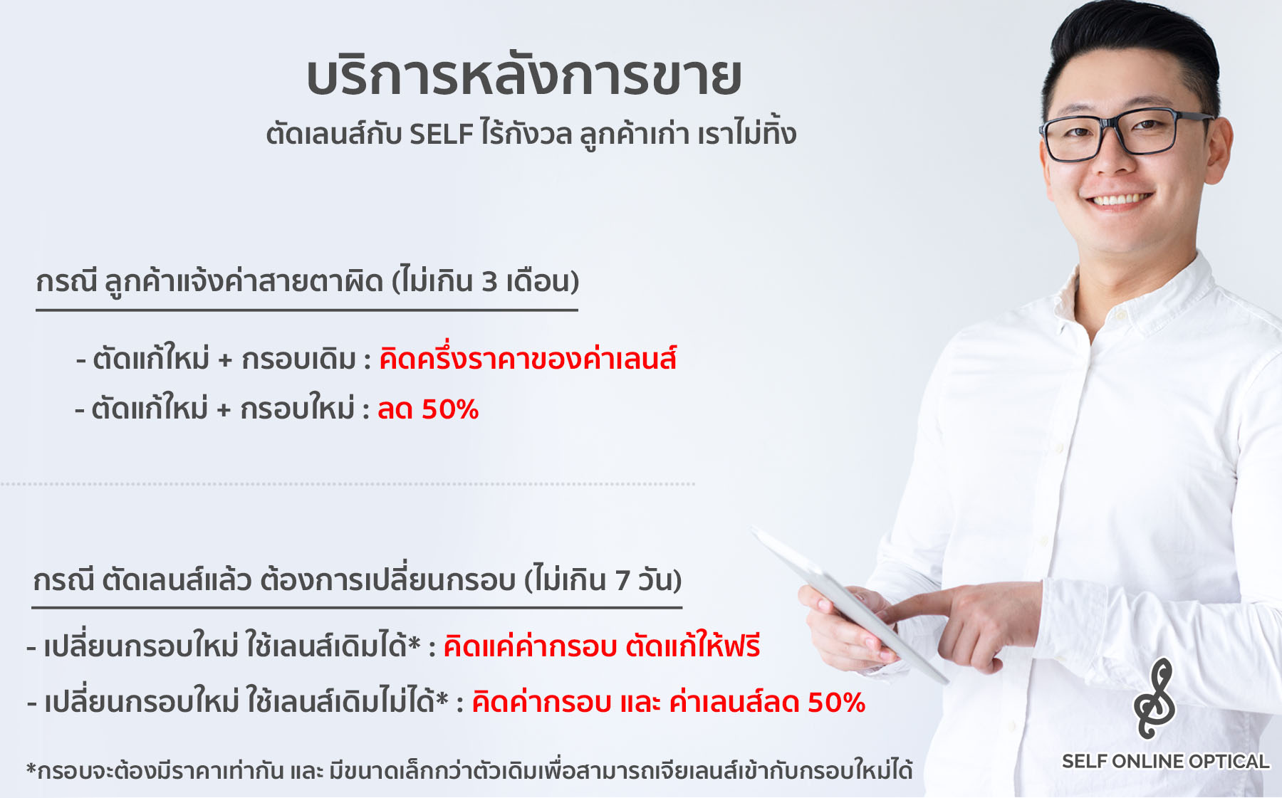 โดยสินค้า,อุปกรณ์ทั้งหมดรวมถึงบรรจุภัณฑ์ที่เปลี่ยนหรือคืนจะต้องอยู่ในสภาพใหม่สมบูรณ์และต้องเป็นสินค้าที่สั่งซื้อกับทาง SELF ONLINE OPTICAL เท่านั้น